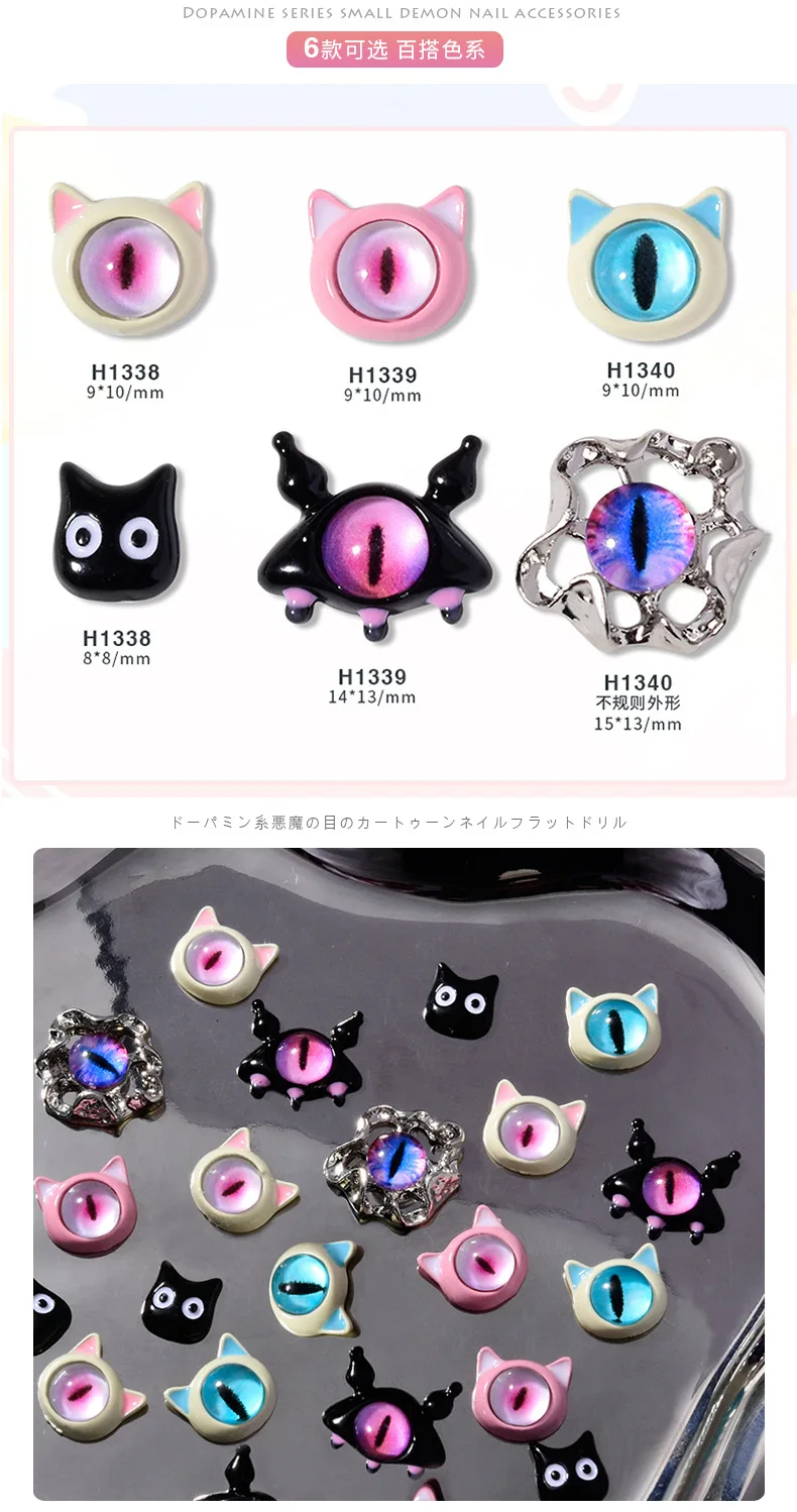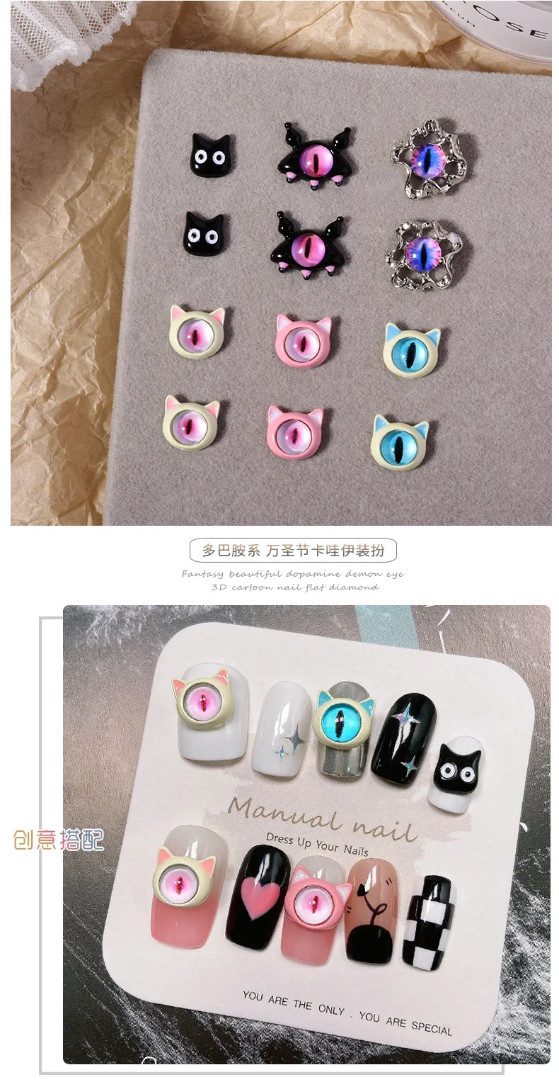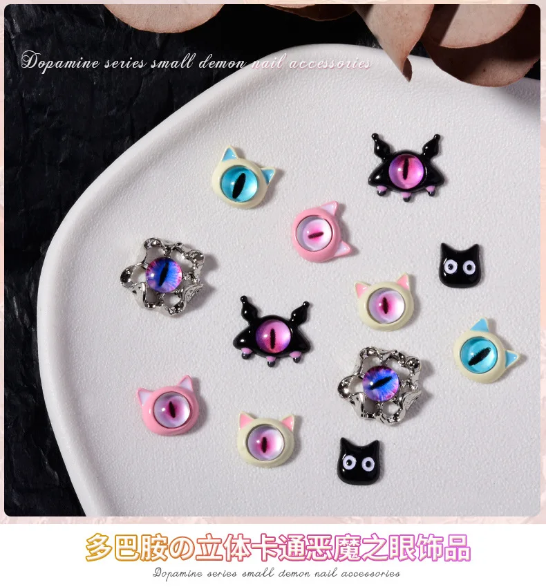10PCS 3D Devil's Eye Pupil Nail Art Charms Alloy Kawaii Accessories Part For Manicure Decor Halloween Nails Decoration Supplies
